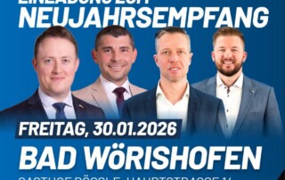 Der Kreisverband Unterallgäu-Memmingen lädt Sie sehr herzlich ein zum Neujahrsempfang am Freitag, den 30.01.2026 um 19:30 Uhr im Gasthof Rössle, Hauptstraße 14, 86825 Bad Wörishofen. Als Gäste dürfen wir die Bundestagsabgeordneten Andreas Mayer MdB und [...]